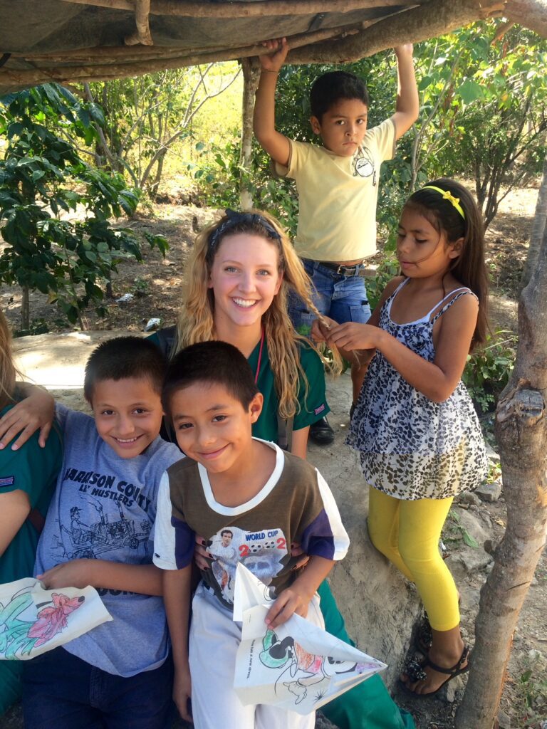 Maddie getting her hair braided and having some fun with a group of kids from the village of San Rafael del Norte in Nicaragua during a medical and public health global brigade trip in 2015.