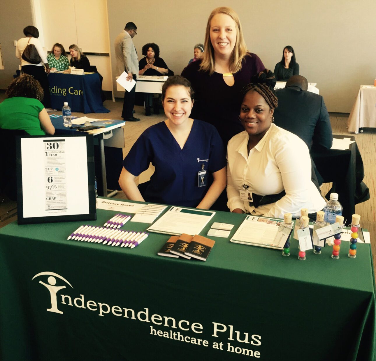 Tori, RN, (pictured seated on the left), joins IPI’s Home Nursing Residency Manager Brittany, RN, (pictured standing), and IPI’s Recruitment Specialist Alishia at a healthcare career fair at Malcolm X College in Chicago.